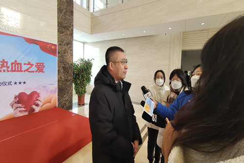 ? ? ? ? 在活動(dòng)啟動(dòng)儀式結(jié)束之后,參加活動(dòng)的一行領(lǐng)導(dǎo)共同到采血車上看望、慰問(wèn)了正在獻(xiàn)血的員工,向他們獻(xiàn)花表達(dá)敬意和感謝。之后,王鵬里書記,楊向榮總經(jīng)理分別接受了參加活動(dòng)的省、市新聞媒體記者的集體采訪。
