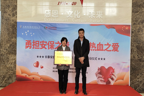 ? ? ? ? 在儀式上,長(zhǎng)春市衛(wèi)健委副主任范金明代表長(zhǎng)春市人民政府獻(xiàn)血工作領(lǐng)導(dǎo)小組辦公室為長(zhǎng)春保安集團(tuán)頒發(fā)“獻(xiàn)血特別突出貢獻(xiàn)單位”獎(jiǎng)牌 。長(zhǎng)春保安集團(tuán)總經(jīng)理?xiàng)钕驑s上臺(tái)接受獎(jiǎng)牌之后,宣布“勇?lián)脖V?zé),奉獻(xiàn)熱血之愛(ài)”集體獻(xiàn)血活動(dòng)正式開(kāi)始。全體獻(xiàn)血員工在集團(tuán)行政辦公室工作人員的組織下,開(kāi)始有序到??吭诩瘓F(tuán)廣場(chǎng)上的長(zhǎng)春市中心血站五輛采血車上進(jìn)行獻(xiàn)血。